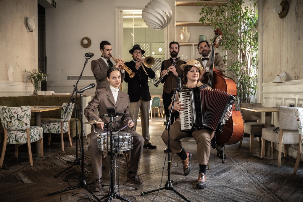- Sexteto: voz, trombón, clarinete, saxo, acordeón, contrabajo y percusión.